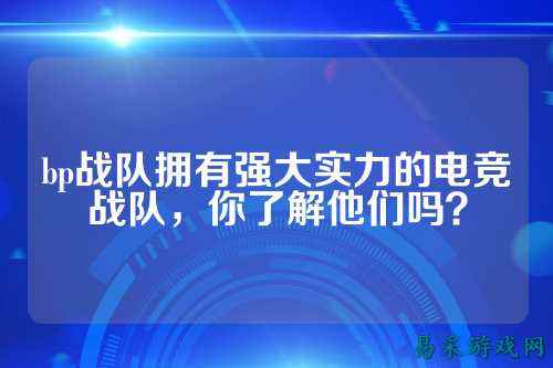 摘要:BP战队是一支拥有强大实力的电竞战队,已经在国内和国际电竞舞台上取得了不俗的成绩。他们的团队实力和个人能力都非常突出,成为了众多电竞迷心中的偶像之一。那么,你了解他们吗?接下来,让我们一起来了解一下BP战队吧。 1. 成立背景