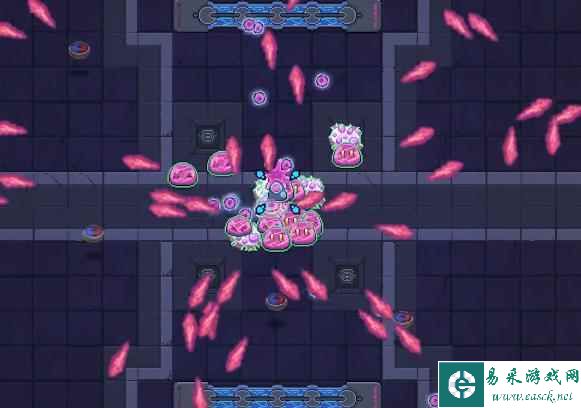 利用磁铁果吸收细胞充能禅龟的膀胱,进而触发铁甲果,形成一个击杀-捡细胞-拿护盾的循环,护盾的位置还可以平行放其他根须比如回血果,是一个非常有效的生存Combo,配合其他攻击流派使自己立于不败之地。 效果展示;