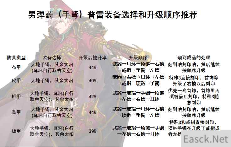 升级武器能够得到的提升是很直观的,并且武器升级消耗的材料和能够带来的提升是远超于单独升级首饰和特殊装备的,因此无论是奶还是C优先升级武器还是一个很不错的选择,除非你狗托到已经翻出了两件首饰或者特殊装备。 普雷的破防机制是20秒打桩,而重甲在20秒的打桩中又是表现最好的,所以我们优先选择重甲,其次是表现差不多的布甲。 重甲升级顺序