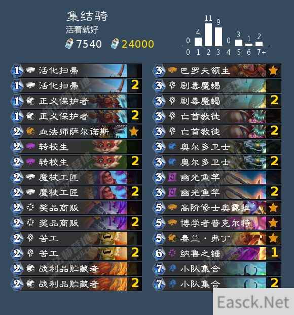 志同道合,使用小队集合召唤4个相同的冒险者,阴间成就,和怀旧成就里总是霍夫一样纯运气卡组,当然如果有py对象一起用周卓对刷的话会快很多,但楼主我没有,所以就没完成。本来楼主我打算100%成就再来发成就攻略的,但想到之前古神在上的成就楼主我是马戏团版本最后一星期才完成的就放弃了。为了能让成就党们能尽快完成,所以楼主我就提前发布攻略了。 ps:楼主我打了300把骑士终于做完这个阴间成就了。终于可以把这个图换成完成后100%的图了。