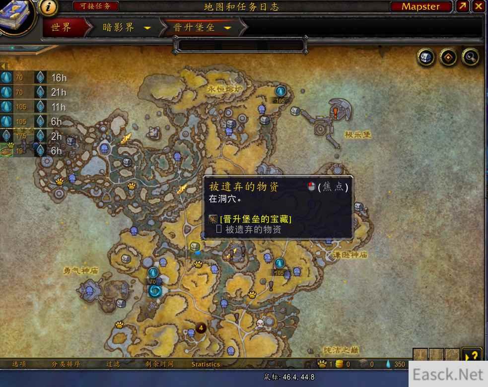 魔兽世界9.0暗影国度中,玩家来到了暗影界,在暗影界的晋升堡垒地图上玩家可以找到很多宝藏,比如被遗弃的物资,那么被遗弃的物资在哪?下面就给大家带来魔兽世界被遗弃的物资位置坐标。 魔兽世界14天游戏时间免费领取地址:点击查看 被遗弃的物资位置坐标 入口隐蔽,坐标46.54 46.68