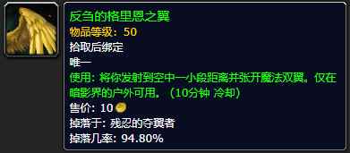 魔兽世界9.0版本带来了很多新的物品,比如物品中有一个杂项叫做反刍的格里恩之翼,那么这个物品怎么获得?下面就将带来魔兽世界9.0物品反刍的格里恩之翼获取方法。 魔兽世界14天游戏时间免费领取地址:点击查看 wow9.0杂项反刍的格里恩之翼获取方法 反刍的格里恩之翼 阵营:无 消耗品