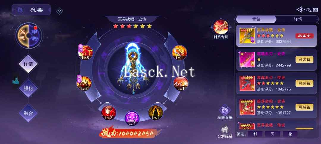 三、魔器的选择与合成 1. 魔器类型与属性 史诗魔器:技能丰富多样,能够提供更全面的战斗加成。 传说魔器:技能较少,但基础属性强劲。