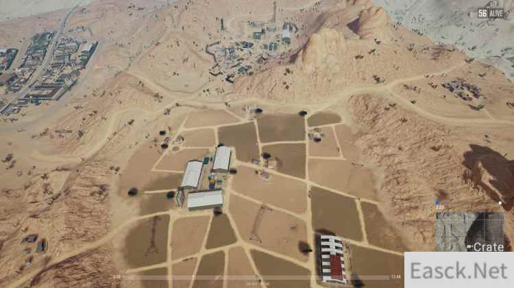 而翻过山则是陨石坑,左边的集装箱区虽然物资相对丰富一点,但地形复杂搜起来麻烦,右边的几个仓库就比较简单了。时间够的话两边都可以搜。急着跑毒的话就去三仓看一眼再走,最多花20秒时间。一片平原哪怕你车技再惊人也不会平地翻车。