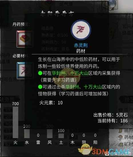 《鬼谷八荒》赤阳丹材料及材料获取方法