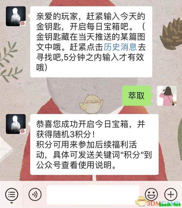 明日之后1月11日微信每日一箱答案是什么?在明日之后官方微信公众号里有一个开个箱的活动,玩家可以在推送的文章中找出每日开个箱的金钥匙答案,回答正确就会获得一定的奖励,那么1月11日的金钥匙答案是什么呢?下面一起来看看吧。 小编推荐:明日之后每日一箱答案汇总 1月10日微信开个箱金钥匙答案