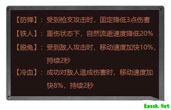 明日之后中有四种护甲技能,分别是防弹、铁人、脱兔和冷血,虽然都是护甲技能,但是各自的属性和加成是不一样的,玩家需要看情况选择合适的护甲技能,下面就一起来看看明日之后护甲技能选择推荐吧。