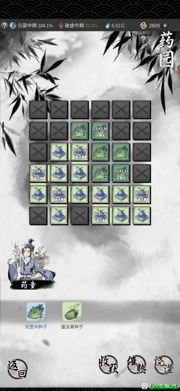 一件金装没有 并且打算购买道法果礼包的 可以大面积种藤配合至宝壶升金藤起反虚金色装备 预留1-2 位置给天罡木即可 暂时不考虑道法果