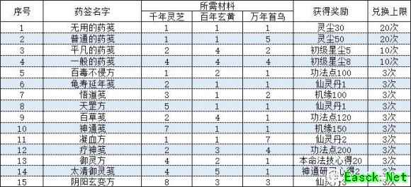 无用的药笺 千年灵芝1 百年玄黄1 万年首乌5 奖励灵尘30 兑换上限20次