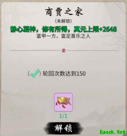 1.轮回第4身份解锁,需要在登仙商店购买商贾金元,轮回150次解锁。