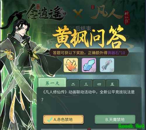 《一念逍遥》游戏中黄枫问答是凡人修仙传联动活动,很多玩家想知道黄枫问答第五天答案是什么,那么今天小编就给大家介绍一下一念逍遥黄枫问答第五天答案分享,有需要的小伙伴不要错过了。