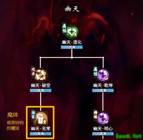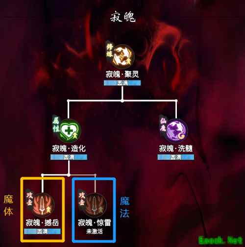 1、魔的心法路线为:凝幽、炼煞、飞煞、寂魄、绝玄、幽天以及新出的天煞,每个节点对应着仙魔修为。