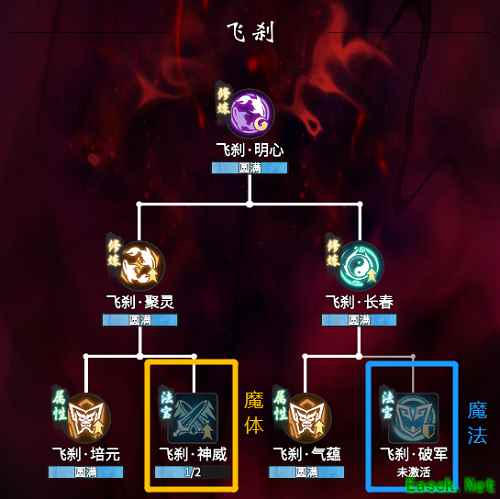 2、且必须仙魔修为和上一层心法消耗达标才能学习,下面为魔法和魔体的心法学习路线建议!