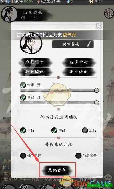 在头像中下拉找到天机密令。