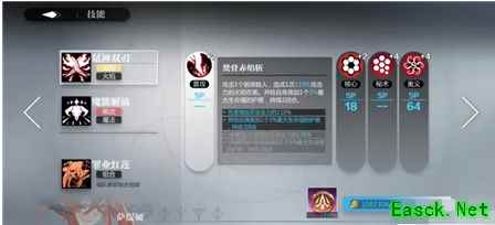 秘术技能:黑羽庇护,被动生效,在自身每次获得护盾时能够增加护盾效果,上限5次,满级最高可达25%;在敌方每次获得燃烧效果时,增加所有我方单位的伤害,上限10次。