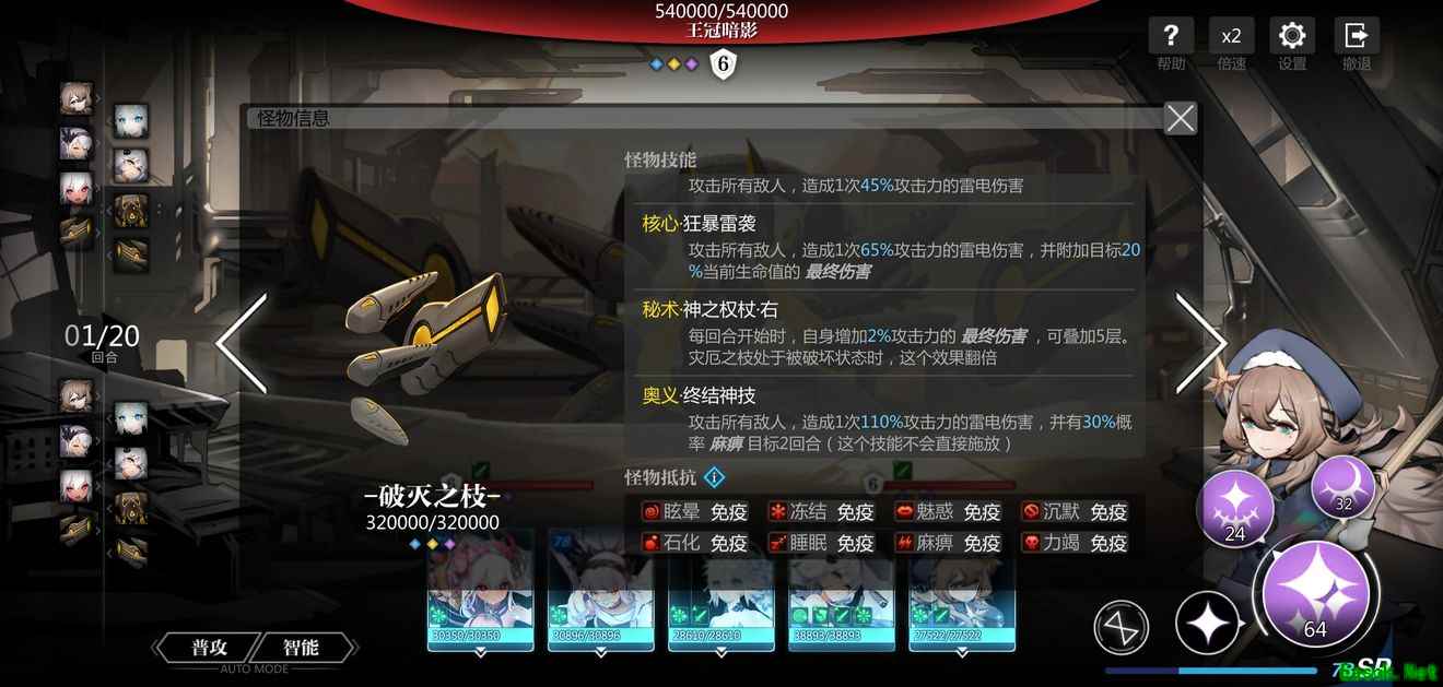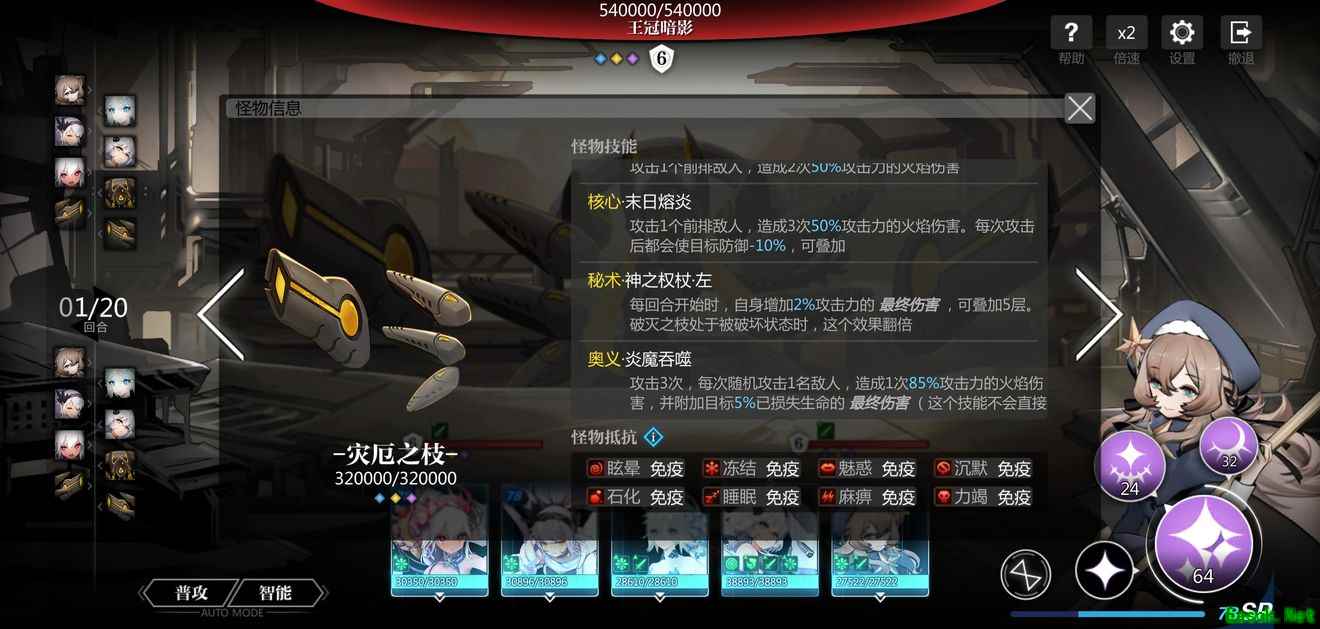 特点:最恶心的次元深渊,BOSS有强力冰冻和麻痹控制技能,有免死和高额回血,低血量斩杀,输出各个都不低,通关时间长,是目前最折磨的地图,比较不推荐在星界废墟刷碎片,可以选择跳过。