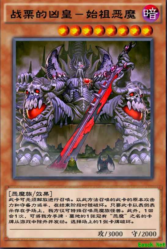 自身的攻击力高达3000,一回合一次将自己手牌或墓地中名字带有“恶魔”的怪兽除外,可以取对象地将场上1张卡破坏!