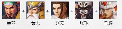 五虎上将(关羽,黄忠,赵云,张飞,马超):横扫可以为关羽回复造成伤害值170%的生命值