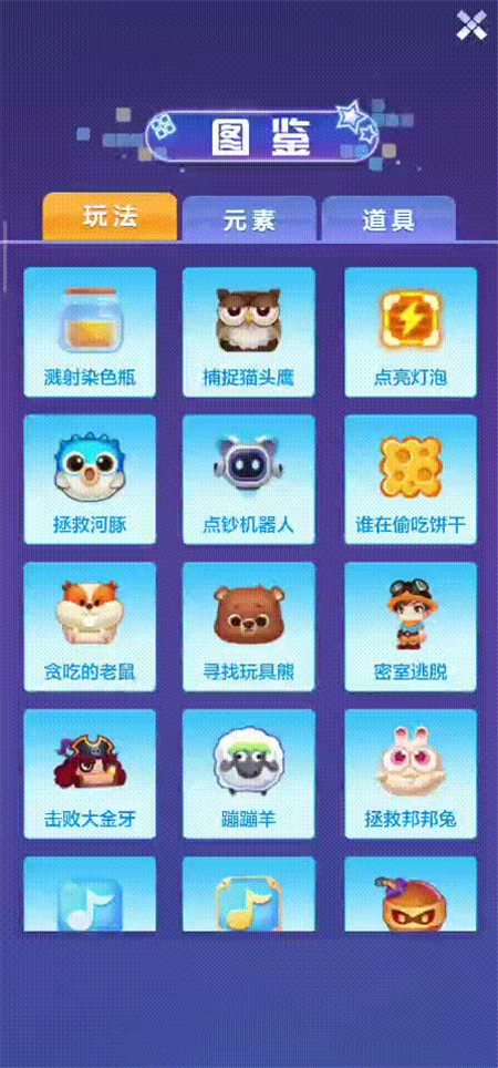 每个城市除了普通关卡和密室关卡外,还有拯救雪橇犬、宝藏关卡、藏宝图三个福利任务。拯救雪橇犬需要通过一定的关卡数来完成,达到目标后解救雪橇犬,雪橇犬会赠送你一些游戏道具。和拯救雪橇犬一样,藏宝图同样是通过不同的关卡获得系统奖励,有所不同的是,藏宝图给的宝箱中是皮肤碎片,集齐碎片则可以兑换皮肤。宝藏关卡则是限时进行消除,获取一定量的特趣思币,特趣思币可以用来兑换皮肤、主题、特效、表情等,让自己的游戏界面不再单调。