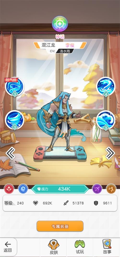 技能机制与女妖极度相似,但强度上实在差强人意,伤害由于本作并没有女仆,无法让其达成大招的连续释放,导致其战力并不强,在推图的过程中经常暴毙(161以前),纵使161以后获得了大招造成伤害后回复生命值的效果,但其伤害在本游戏中确实不太理想,如果还想玩4+1的朋友可以试着开发看看,我目前是卡在23章动不了(李俊阵容)