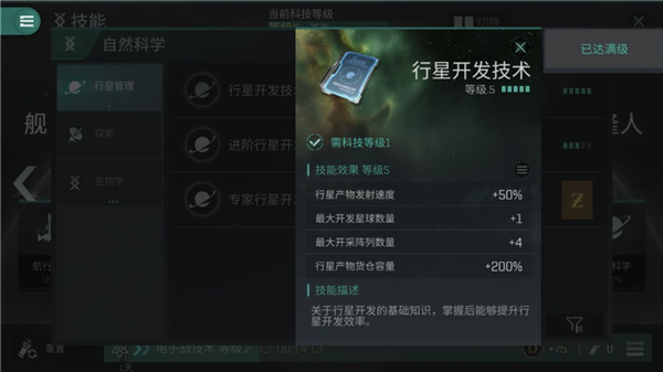 最后是行星开发技术的等级提升,推荐直接点满,因为行星开采是一个稳定且相对更安全的赚钱手段,其技能等级的提升所带来的收益也会飞跃式的上涨。有了这个技能,就如同有了一个坚实的后盾,卷土重来将会变得更加容易。