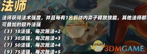 1、法师:法师获得法术强度,并且每有1名羁绊内弈子释放技能,其他法师都会获得可叠加的额外法强。