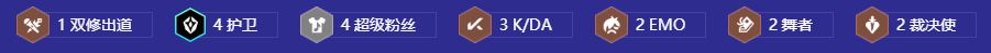 1双修出道、4超级粉丝、3K/DA、2EMO、2舞者、2裁决使