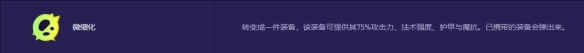 4、微缩化:具有转变成一件装备,该装备可提供其75%攻击力、法术强度、护甲与魔抗。已携带的装备会弹出来。