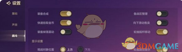 2、打开游戏右上角的设置按钮,然后依次点击战斗-轮盘辅助-滑块打开。