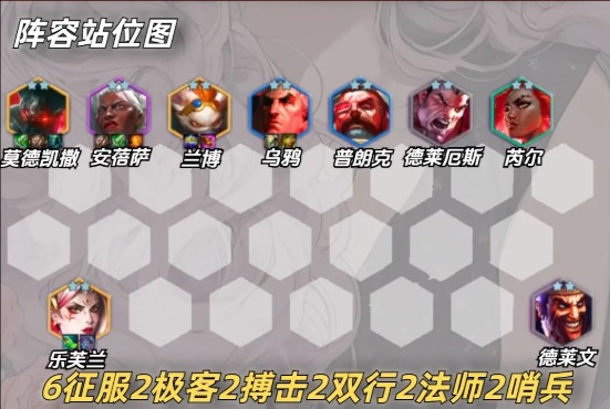 3、铁男星界韵律进化后,4秒后无限技能清场,羁绊组成6征服2极客2搏击2双形2法师2哨兵。