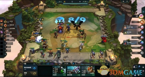 5-1左右D二星飞机、安蓓萨就可以存钱上9,找二星5费卡(这局血量健康+物尽其用+安蓓萨只有一张,选择直接上9找二星5费C)