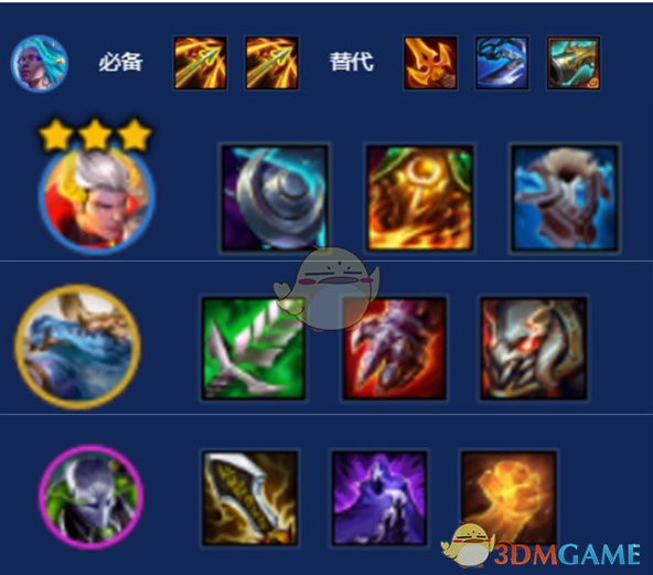 劫配备无尽、夜刃、正义;高爆发暴击流配置,秒杀对方后排关键棋子。