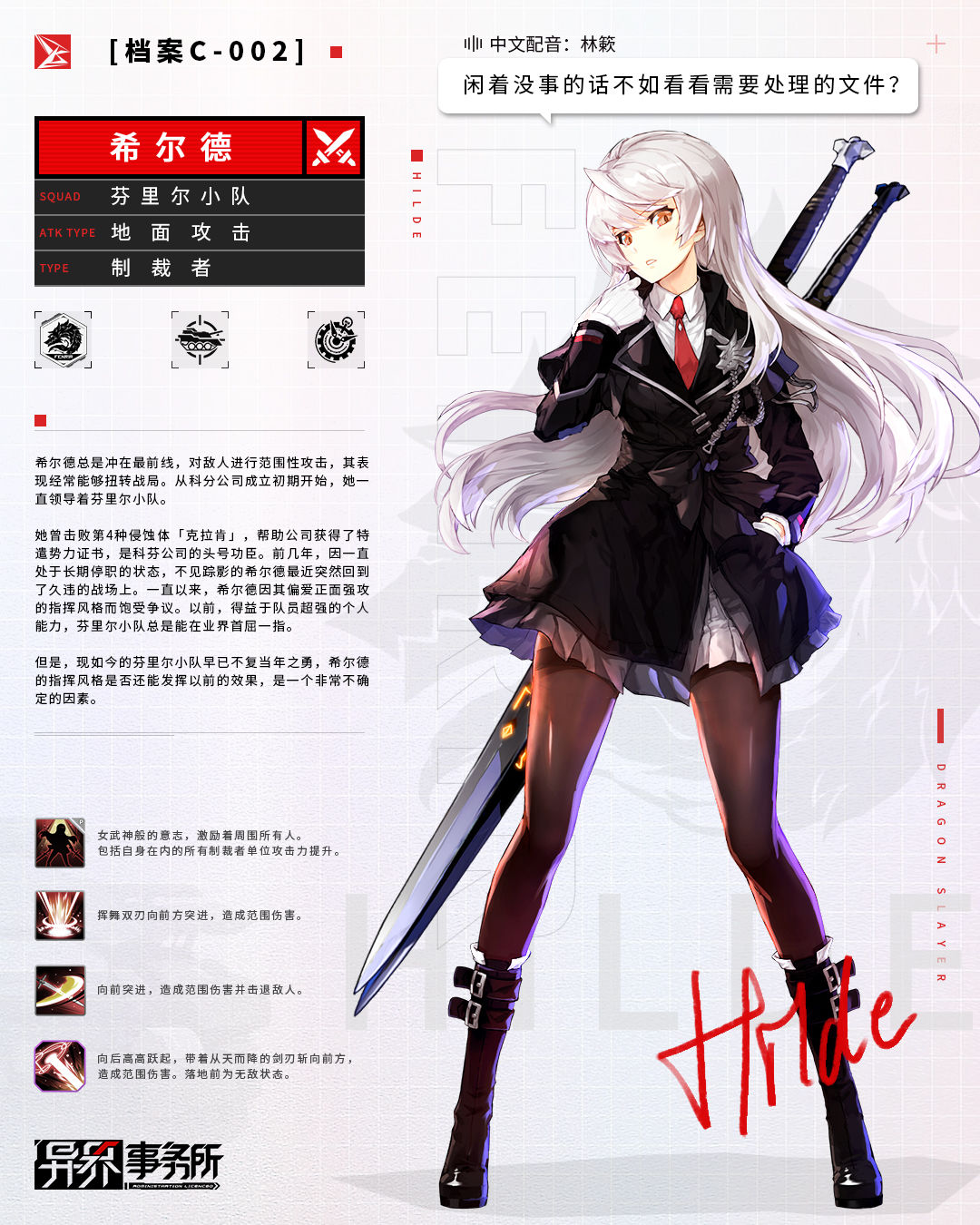 以上就是小编整理的关于《异界事务所》希尔德角色介绍的全部内容,更多游戏攻略请持续关注手游网!