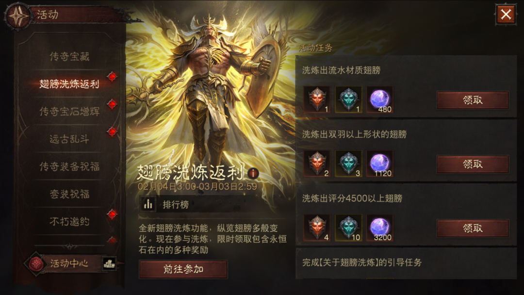 解锁翅膀系统的冒险者可参加本次活动,完成活动中的任务即可获得奖励,任务包括: