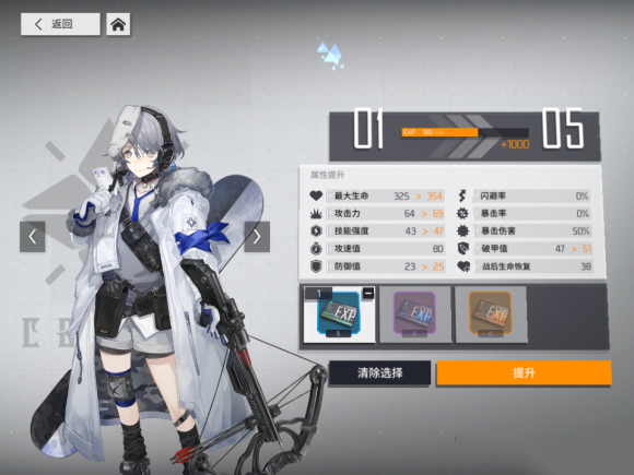 职业和定位不同,人形的属性和成长值偏向也会不同。以守卫职业坦克定位的克罗琦为例,她的生命值和防御力初始值很高,血量和防御成长评分为A,攻速成长为C,其余为B。