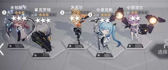 前期的5人配队基本按照1~2医师(推荐帕斯卡)+1守卫(推荐克罗琦)+2~3输出即可,低星角色里输出位比较推荐的有:苏尔、贝蒂、麦克斯(需扩容至2星)、咲耶。高星输出角色大部分都可以练,在前期3星带来的基础属性优势还是相当明显的。