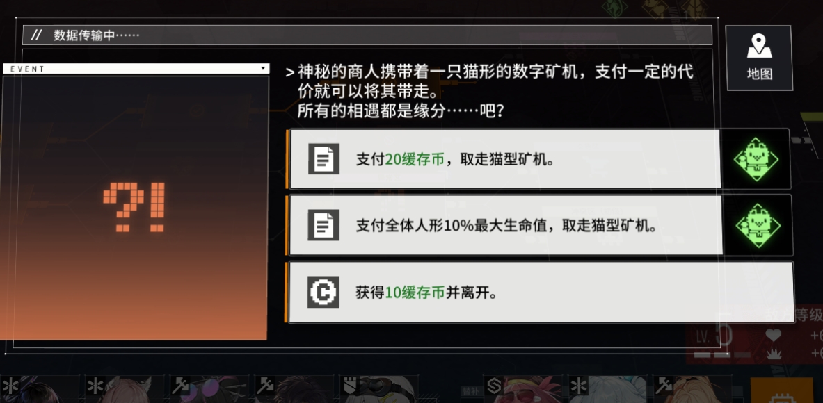 2、支付全体人形10%最大生命值,取走猫形矿机。