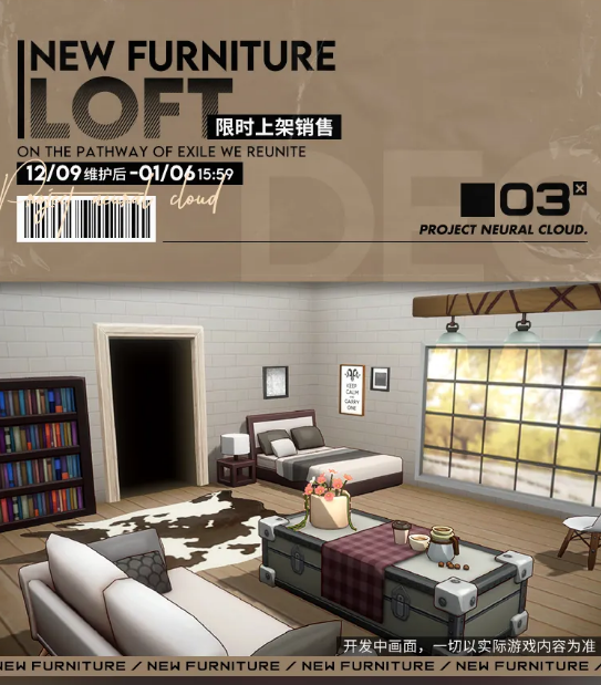 亲爱的教授,2021年12月9日 维护后~2022年1月6日 15:59 期间,【家具采购】内将上架全新主题家具「LOFT」,您可以使用家具币进行采购。