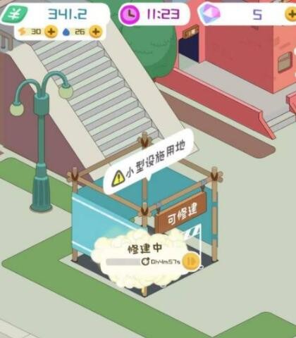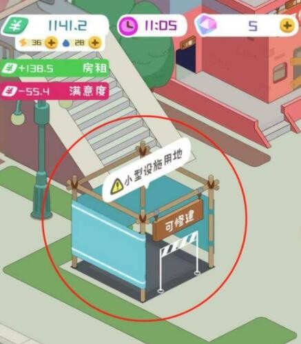 1、在“房东模拟器”主界面中,点击图中显示“可修建”字样的小型设施用地。