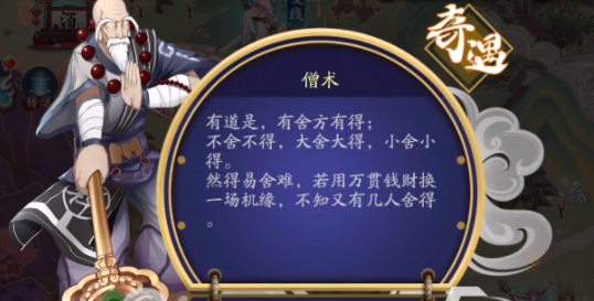 那么阿紫开始奇遇之后,一般都是会进行一段剧情,剧情之后要么是进入到战斗中,要么就是提供选择。比如说本次的老僧奇遇,这个奇遇就是要玩家投入铜币,一个是比较少的选择,一个是比较多的选择。上面也会有红字提示,玩家的选择会直接影响结果的。这类选择肯定不用看,直接选择最多的就行了。完成该奇遇之后可以获得搜灵秘卷的奖励,还是非常不错的。