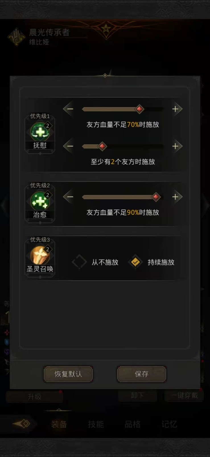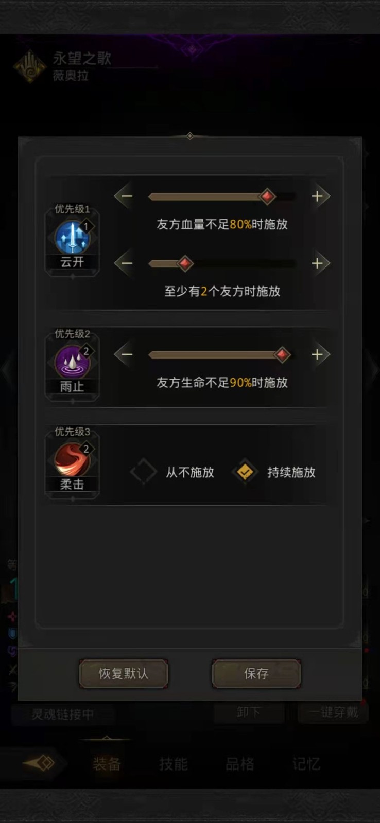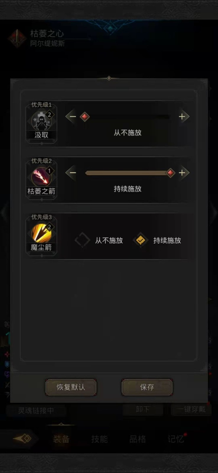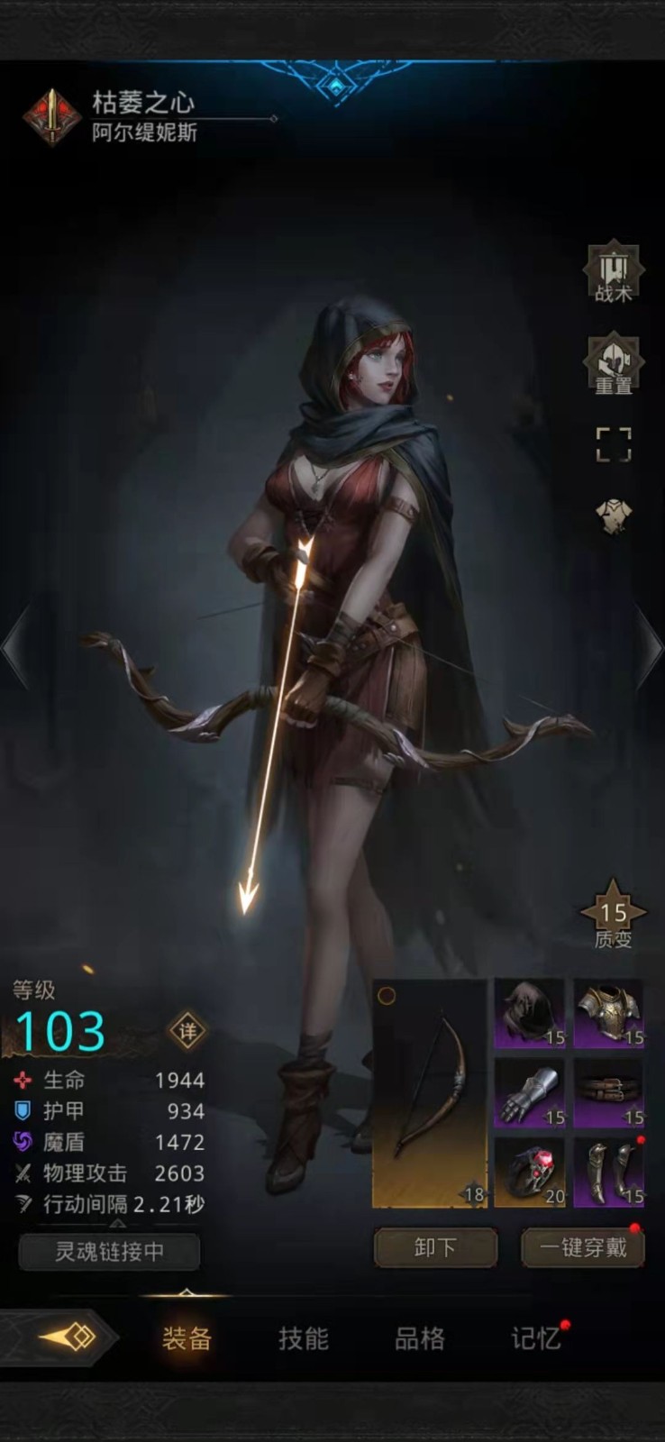 2、30层开局的时候,千面和枯萎之心立刻开吼,只要挂上枯萎回复降低100%,这关就稳了,死一个两个都没事,然后千面和晨星开自动吼