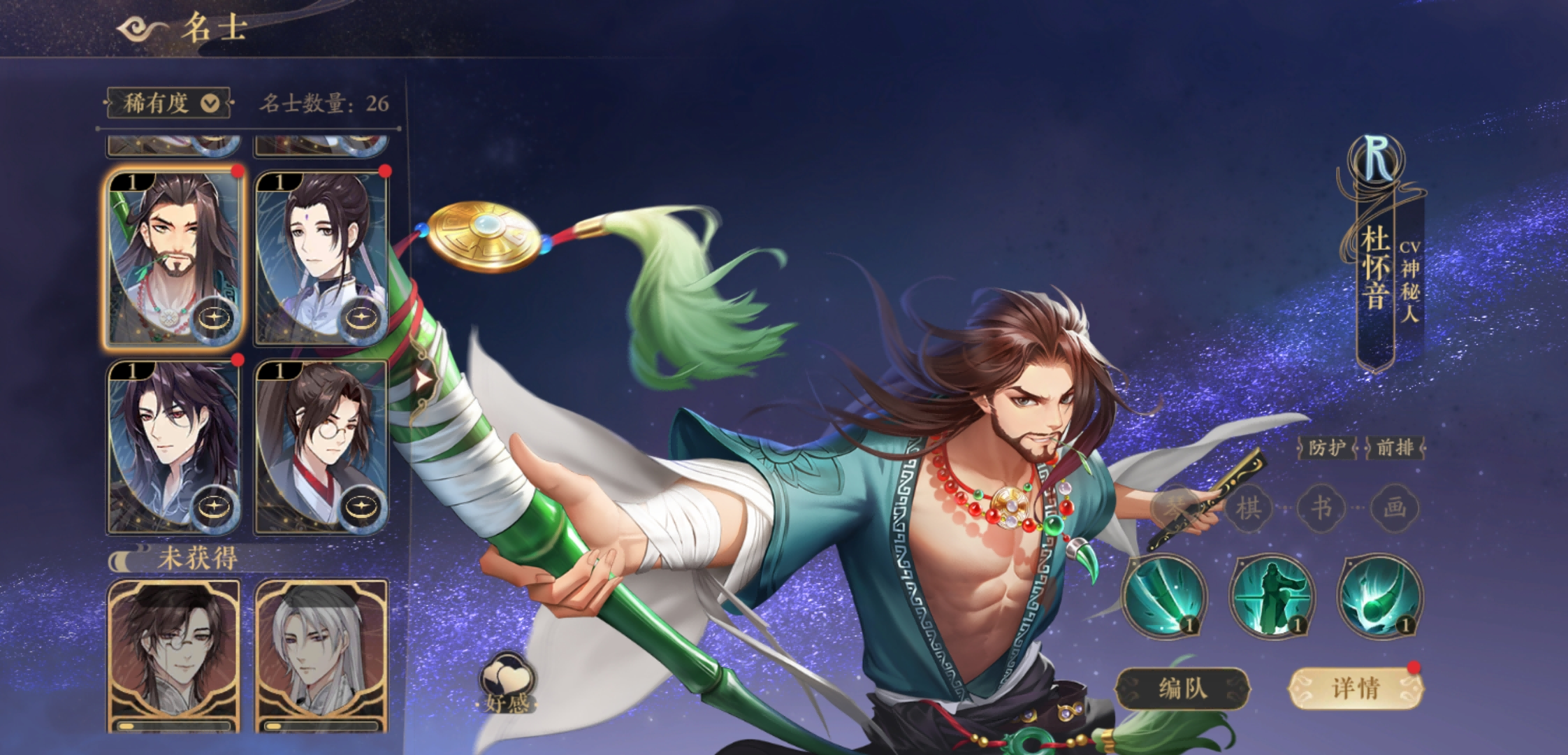【护身棍】:被动技能相当强大,可以让我们同排三名队友的生命值上限提升,数值为杜怀音最大生命值的10%。搭配治疗加成装备的话,实战当中效果还是很强大的。而且这个是自己行动就可以恢复,不受制于怒气的限制。