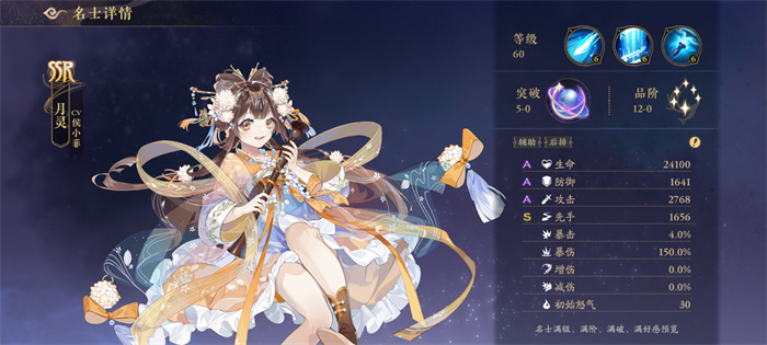 【普攻】:作为辅助角色的月灵,其技能除了可以造成一定的伤害以外,更重要的是可以降低敌人20%的防御力,不过触发概率只有10%而且无法提升。毕竟只是ssr级别的辅助角色,有一个增伤效果还是很不错的,不过这种降低防御力的效果无法叠加。