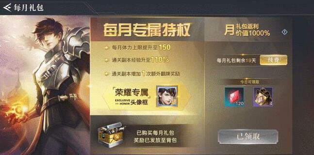 2、此外,游戏中对体力值帮助最大的是月卡,入手后每天体力值上限自动上升30,还送额外翻牌机会和经验加成,首充和累充满一定金额也会赠送一定体力,但这就要量力而行了。