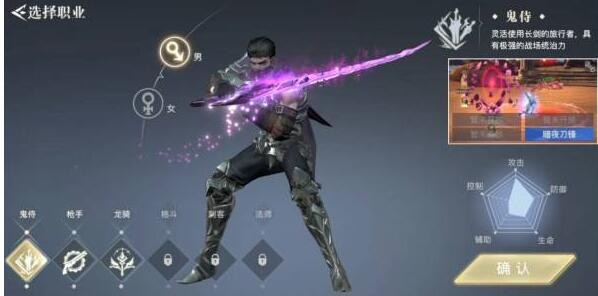 荣耀全明星游戏中由于转职前的鬼侍技能以瞬发为主,攻速高连招快,同时具有很强的位移,极易适合作为输出,因此推荐转职为暗夜刀锋。其定位为主C,主打光剑流。