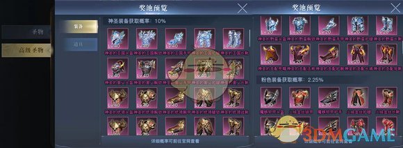 左奖池-高级圣物;右边奖池-圣物