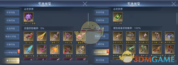 “如果得到没用的橙装和粉装怎么办?那就丢众神宝箱里回收呀!”听听这就是那些全身橙装大佬们的凡尔赛。建议玩家们存一波高等级的装备后再去玩众神宝箱,毕竟只有1119钥匙的50级~55级橙装,和神圣钥匙55~60级橙武橙装才会有提升。注意!非全身橙的玩家不要轻易玩该宝箱