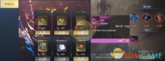通关梦魇之塔42、47、49层,和通天塔的每周BOSS挑战,均可获得梦境碎片。梦境碎片可在梦境商店里兑换50级橙装——米拉首饰三件套,并且它们还可以进化为60级的毕业橙装备哟!通天塔每周最多可获得300片梦境碎片。因此,玩家最快两周就能凑齐50级的米拉首饰的三件套!极力推荐玩家们先把米拉三件套搞到手!