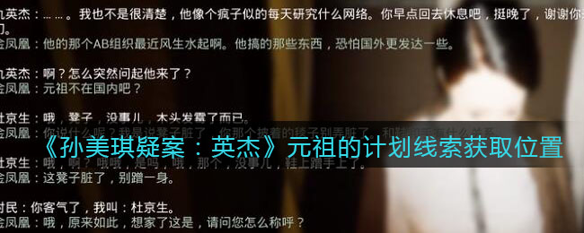 以上就是小编整理带来的《孙美琪疑案:英杰》元祖的计划攻略线索位置介绍,更多精彩内容,请点击关注手游网,小编将持续为您更新!