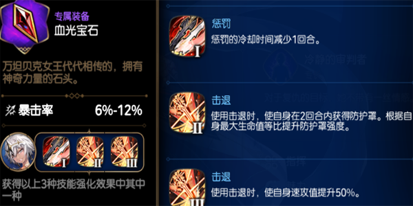 无情地攻击全体敌人,造成伤口效果。使全体我军人员在2回合内暴击伤害提升。根据自身最大生命值等比提升伤害量。